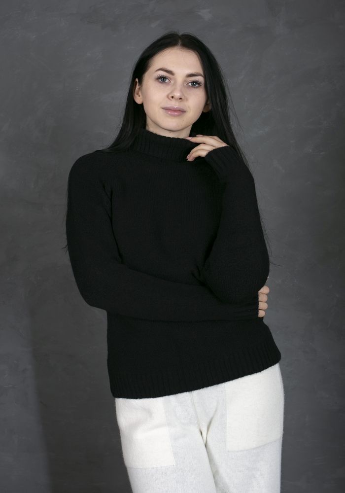 Трикотажний жіночий джемпер-светр. светр з високою горловиною та довгими рукавами-реглан. Склад сировини: 20% вовна+56% акрил+20% поліестер+4% еластан.